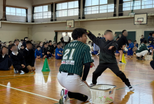 プロ野球独立リーグ・四国アイランドリーグplusの香川オリーブガイナーズは、2026年1月16日(金)、高松市立香西小学校にて、大手前高松高校の生徒がプロデュースする「アトラクション型野球教室」を開催いたしました。本企画は、球団が展開する「探究学習プログラム」の一環として、大手前高松高校1年の高橋沙里唯さん(15)と山下万悠里さん(16)が立案したものです。「野球のルールを知らない子や、運動が苦手な子も楽しめるイベントにしたい」という強い想いのもと、従来の野球教室の枠を超えた「アトラクション形式」を導入。当日は4〜6年生の児童約250名が参加し、プロ選手3名と共に、笑顔あふれる交流が行われました。